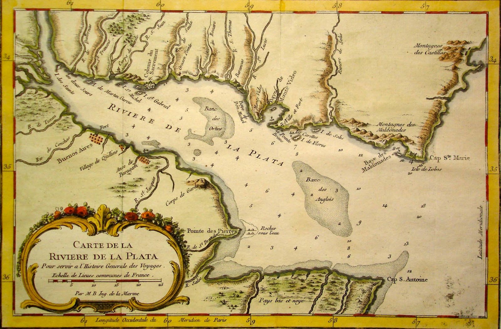Frente a la desembocadura del arroyo, la profundidad de las aguas del rio de la Plata, tanto en la "Carta esférica del Rio de la Plata" de