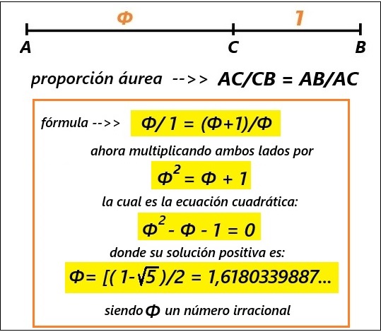 Solo hay cuatro longitudes distintas de segmentos, AC, AB, AG y FG, que verifican: AC/AB = AB/AG = AG/FG = Φ