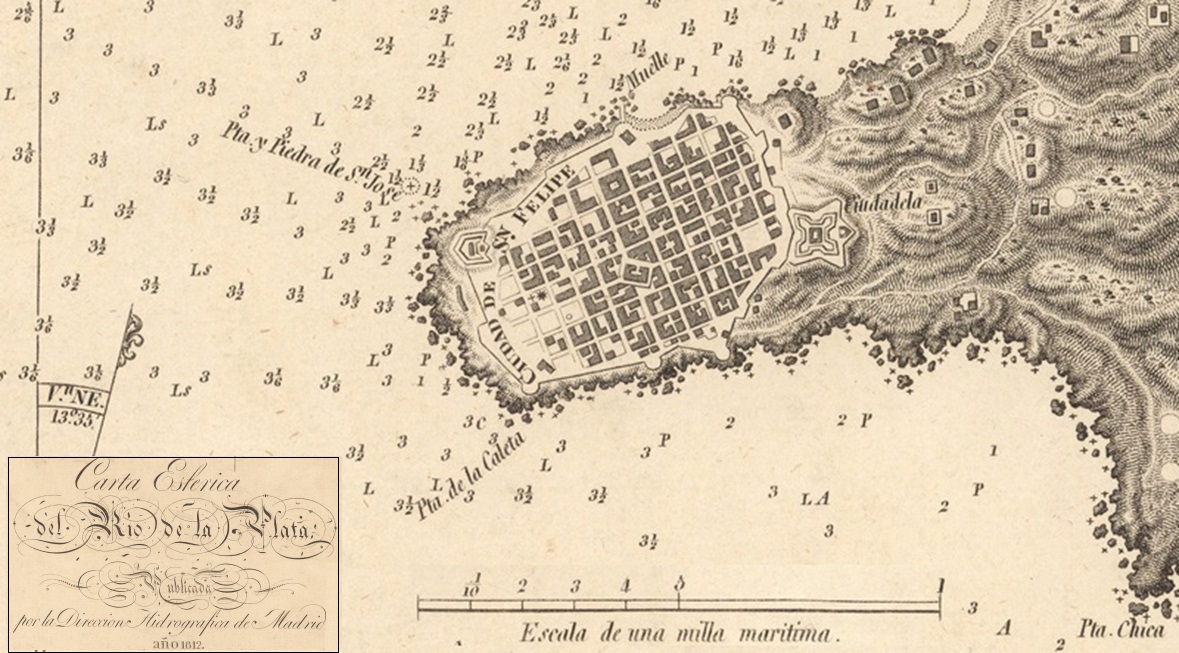 Montevideo. Extracto de la "Carta esférica del Rio de la Plata" de 1812.