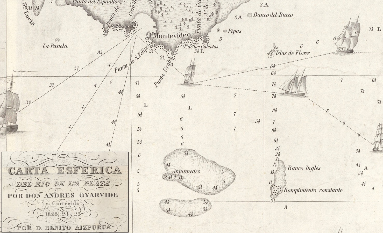 Extracto de la "Carta esférica del Rio de la Plata" de 1825.