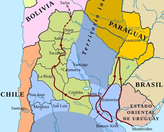 Juan Lavalle, recorrió las provincias de Entre Ríos, Buenos Aires y Santa Fe.