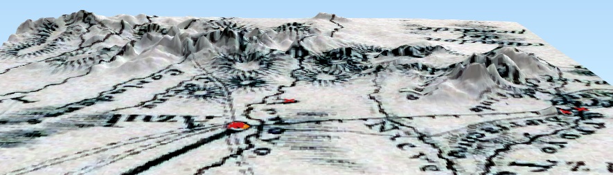 Sierra de los Padres. Mapa 3D con el mapa de 1864 montado