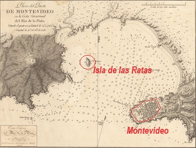 Bahia de Montevideo. Detalle en "Carta esférica del Rio de la Plata" de Andres de Oyarvide de 1812.